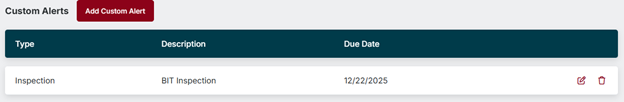 This article outlines how to delete a Custom Alert for a specific vehicle in FleetMentor. Users navigate to Vehicles > Add/View Vehicles, select the Vehicle to edit, and go to the Inspections & Alerts tab. In the Custom Alerts section, users click the Delete icon next to the alert they want to remove. A confirmation prompt appears, and selecting Delete completes the removal.